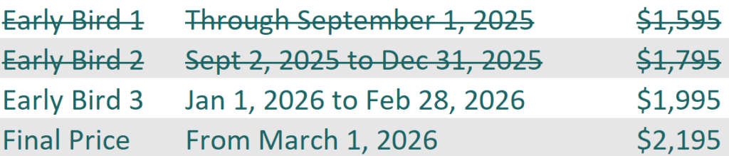 Registration for 1 regular-priced ticket - $1,995.00